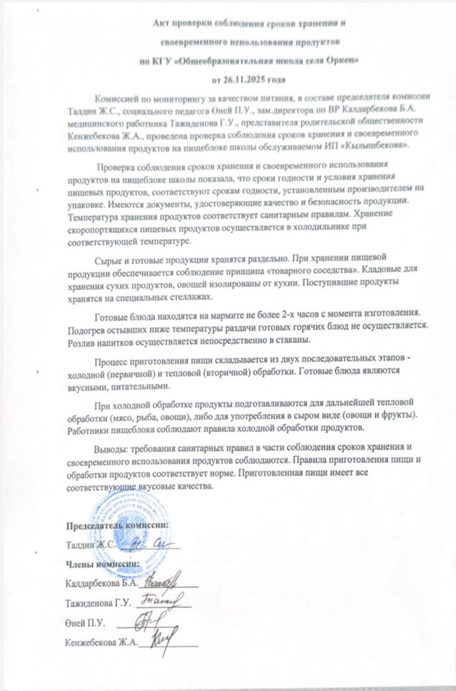 Коммунальное государственное учреждение "Общеобразовательная школа села Оркен отдела образования по Зерендинскому району управления образования Акмолинской области"