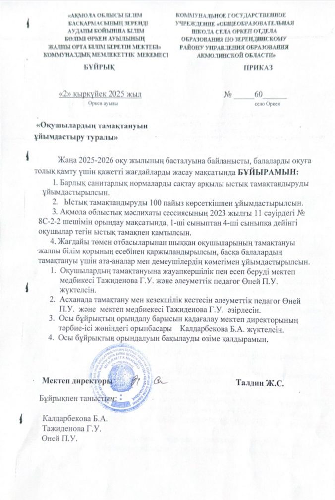 Коммунальное государственное учреждение "Общеобразовательная школа села Оркен отдела образования по Зерендинскому району управления образования Акмолинской области"