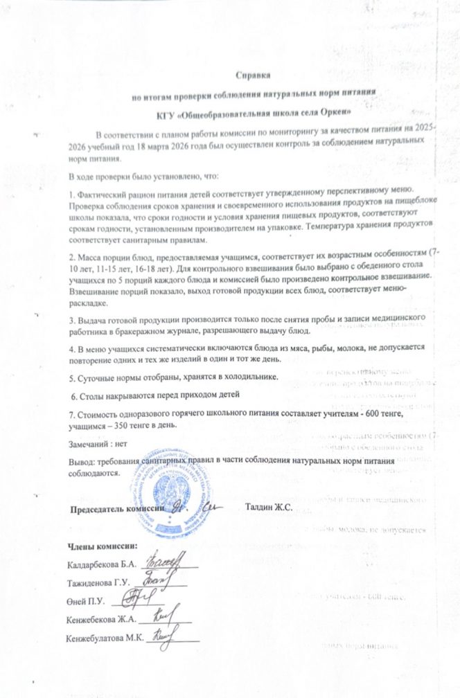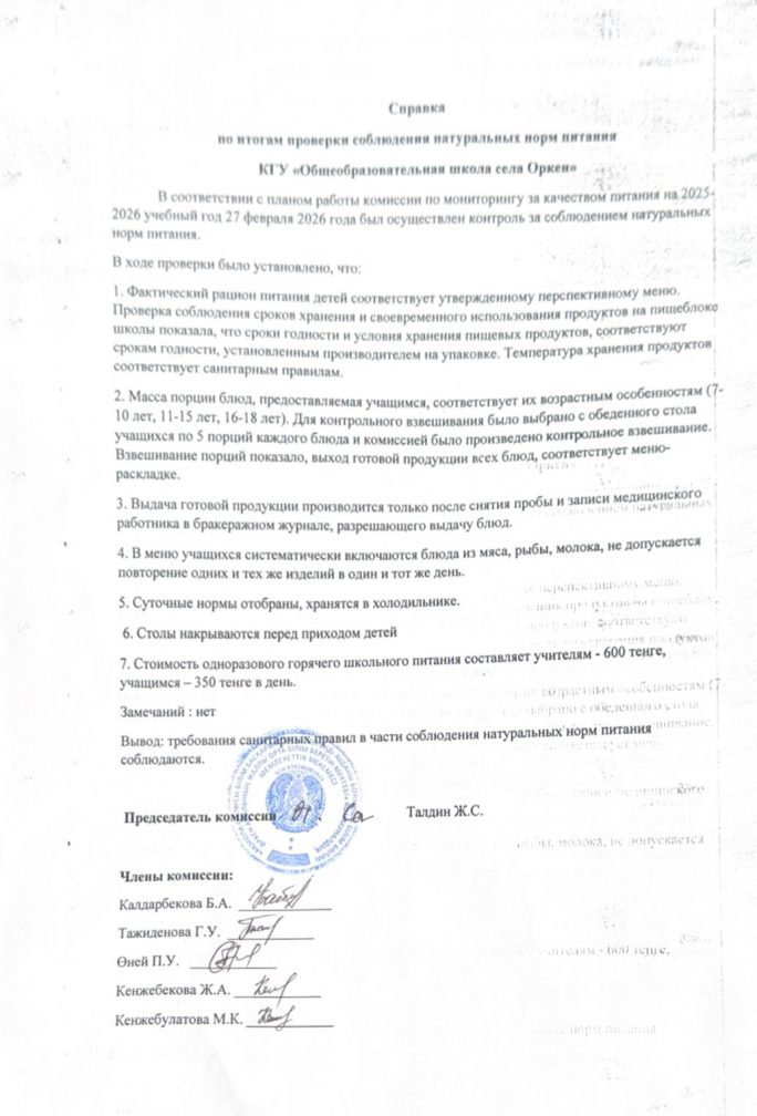 Коммунальное государственное учреждение "Общеобразовательная школа села Оркен отдела образования по Зерендинскому району управления образования Акмолинской области"