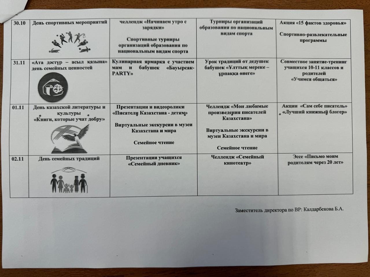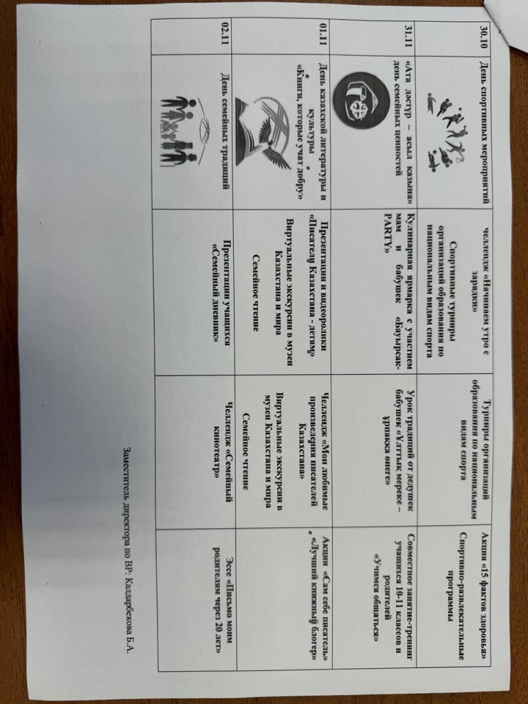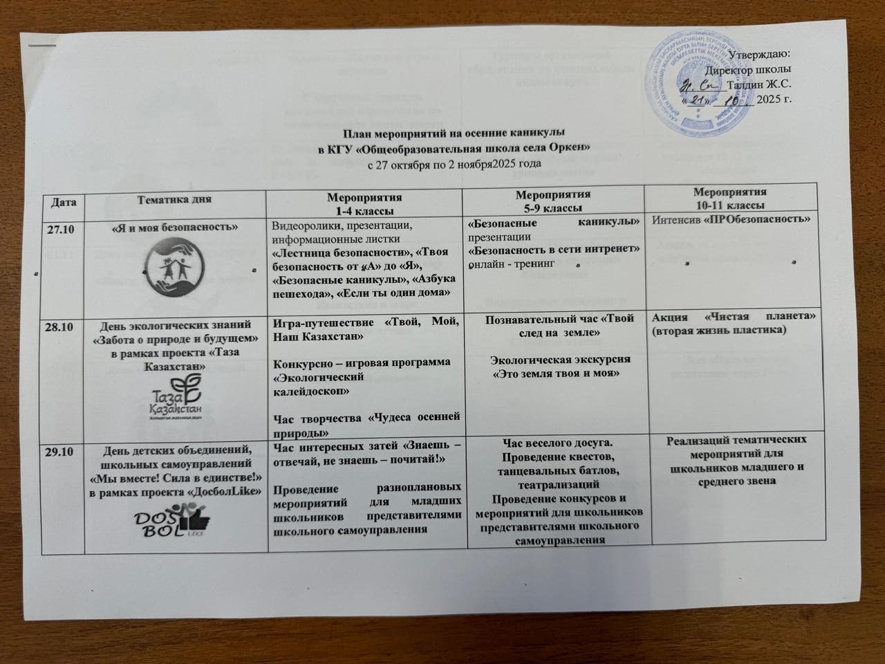 Күзгі демалыстағы жұмыс жоспары