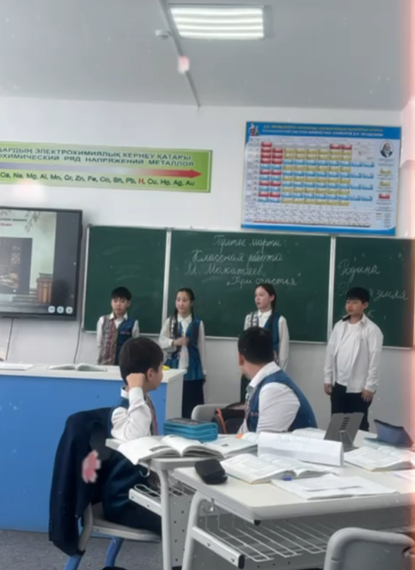 Орыс тілі мен әдебиетінің 03.03.2026ж. пәндік апталығын өткізу шеңберінде Мұқағали Мақатаевтың» Үш бақыт» тақырыбында ашық сабақ өткізілді